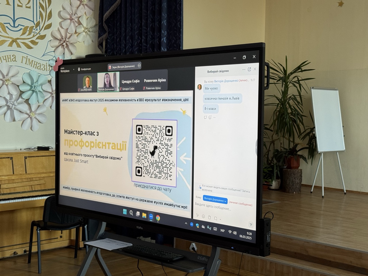 06 березня учні 8-9-х класів гімназії взяли участь в інтерактивному онлайн заході з експерткою програми Вікторією Дорошенко. Учні не лише слухали, але й брали участь в інтерактивних вправах.