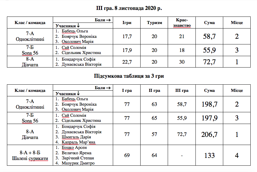 Маємо лідера за підсумками 3-х ігор - команда "Дівчата" (8-А)!